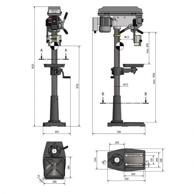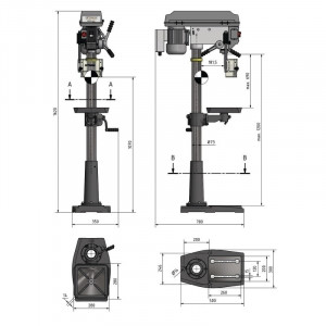 Cette perceuse à colonne à courroies trapézoïdales est une machine professionnelle robuste, conçue pour des travaux de précision.