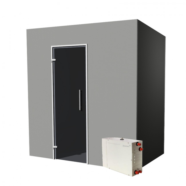 Il comprend un générateur de vapeur, un éclairage d'ambiance, un receveur de douche avec bonde d'évacuation, une porte, des panneaux XPS, un banc, et bien plus encore.