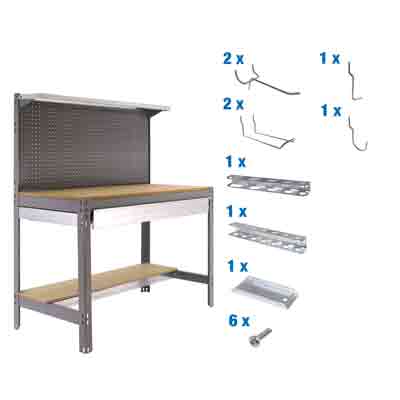 Etabli sans vis 3 étagères +1tiroir et 9 accessoires