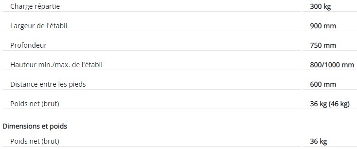 Doté d'une capacité impressionnante de 300 kg de charge répartie, cet établi est prêt à supporter vos projets les plus ambitieux.