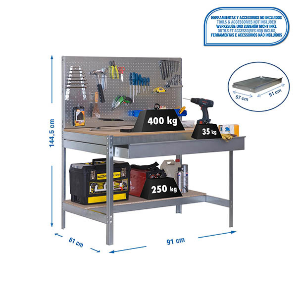 | Réf. TC :148278856 | Etabli métallique avec un tiroir 400 kg | 400 | 1445 x 910 x 610 | 33,29 | Galvanisé / Bois | -