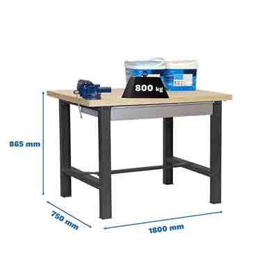 Réf. TC : 972481464Etabli d’atelier avec vis et plateau 600 MDF 865 x 1800 x 750 Anthracite 56.14