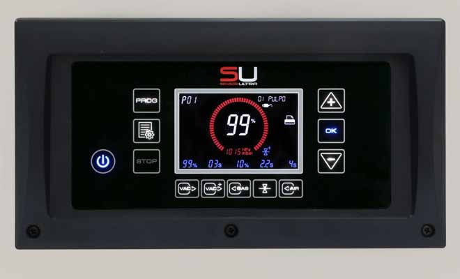 machine à emballer sous vide 420 mm est équipée d’un panneau de commande numérique avec écran indiquant le pourcentage exact de vide “Powered by Busch”