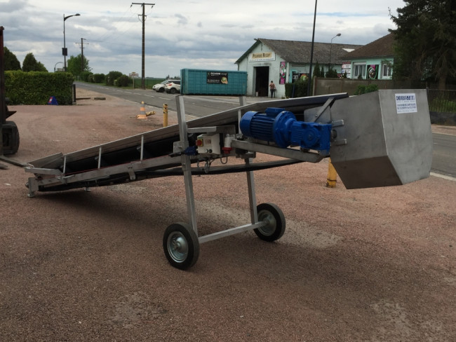Nous avons besoin d"un convoyeur sauterelle de 5 M pouvant absorber un débit de 15 tonnes de pomme de terre à l"heure avec hauteur réglable et mobile.