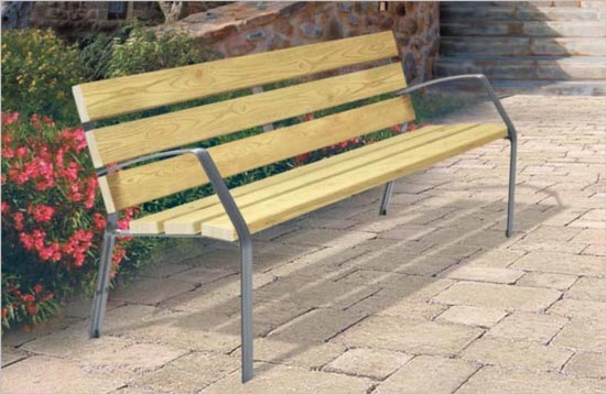Notre banc public en bois pin s’intègre facilement dans les projets d’aménagement urbain et paysager.