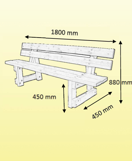 Construction pieds en bois section 90 x 66 mm et dispose des lames en bois d’une longueur de 1800 mm.