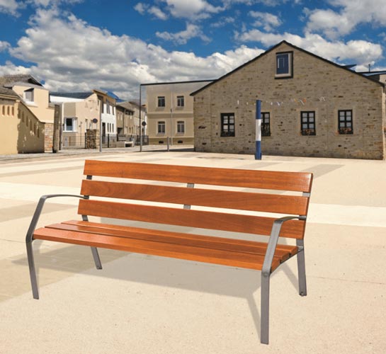Ce banc urbain est composé de six lames en bois exotique avec traitement protecteur fongicide et hydrofuge.