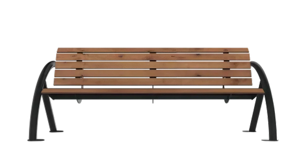 Plusieurs coloris bois sont disponibles : Chêne clair, Pin Tyrol et Teck, ce qui permet d’adapter le banc en acier et compact HPL à l’identité visuelle du site ou du projet d’aménagement.