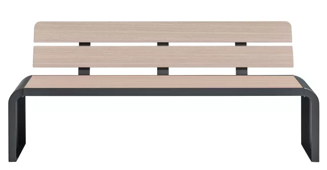 Vous pouvez harmoniser votre banc public HPL à votre environnement grâce à sa structure anthracite mat RAL 7016 et au choix de lames imitation bois : chêne clair, pin Tyrol ou teck.