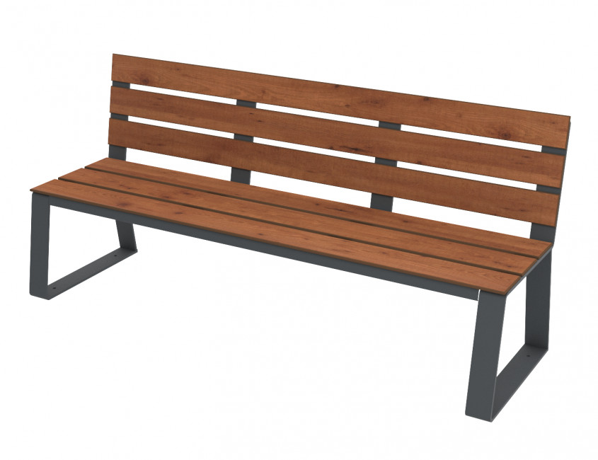 Avec ses 1800 mm de longueur, il offre une assise confortable pour trois personnes, tout en restant peu encombrant en largeur (585 mm) pour s’intégrer facilement sur un trottoir, le long d’un mur ou en bordure d’allée.