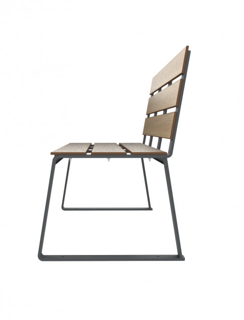 Sa structure en acier traité anticorrosion et poudré anti-UV associée à des lames en compact HPL offre une assise confortable, stable et pérenne, même en usage intensif.