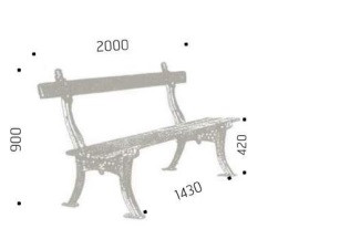 - Assise et dossier composés de 4 lames en bois exotique section 95 x 50 x 2000 mm