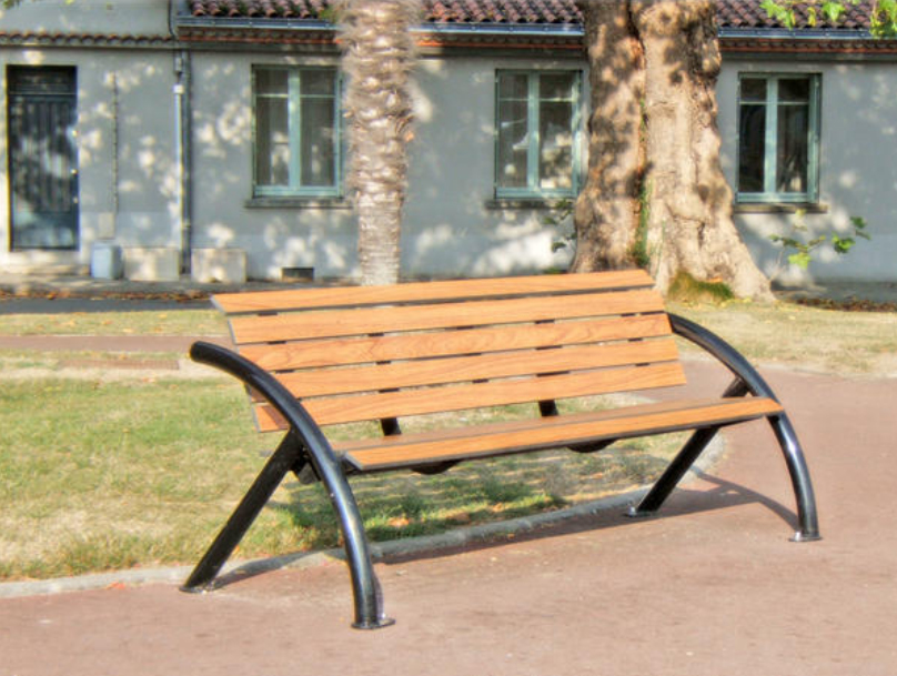 Cette combinaison métal/bois reconstitué facilite l’intégration autant dans des environnements paysagers (parcs, jardins publics) que dans des contextes plus minéraux (esplanades, zones commerciales, abords d’équipements publics).