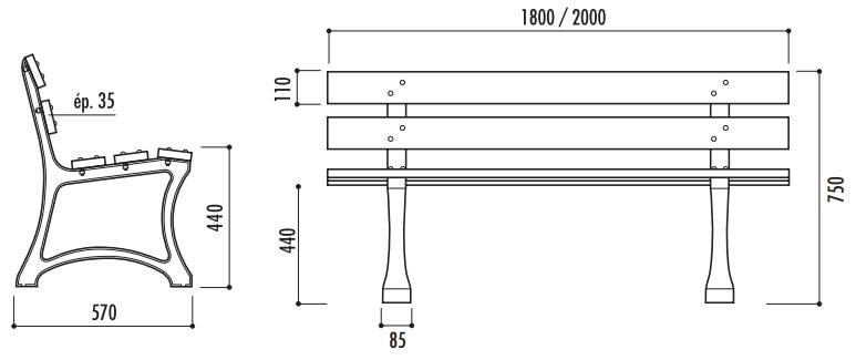 dans le cadre de la préparation d"une étude, je souhaiterai connaître le prix d"un banc de 1 800 et 2 000 mm de longueur