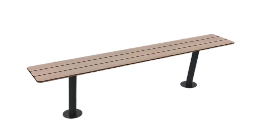 L’assise (et éventuellement le dossier) est réalisée en compact HPL finition effet lames, ce qui donne l’apparence chaleureuse d’un banc design effet lames bois tout en bénéficiant des performances du HPL (stabilité, résistance, faible entretien).