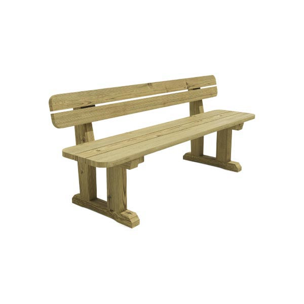 Le banc est réalisé en pin traité classe IV, un traitement autoclave spécifique pour le bois destiné à rester en extérieur, en contact avec l’humidité et soumis aux intempéries.
