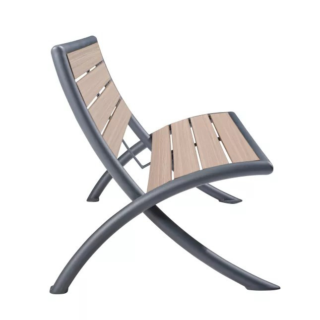Le concept associe une structure en acier et des lames en compact HPL, ce qui en fait un banc extérieur lames HPL parfaitement adapté au mobilier urbain contemporain.
