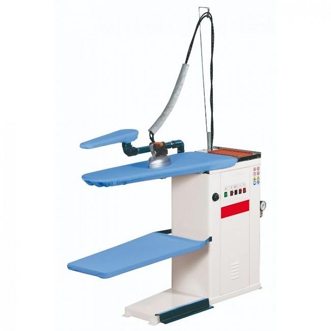 Elles sont équipées de série d’un fer vaporisant, d’un aspirateur et d’une chaudière automatique incorporée, qui offre la possibilité d’alimenter un deuxième fer sur un table adjacente.