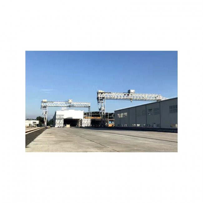 - Le portique à double poutre en treillis est composé de 2 poutres en treillis, de pieds en acier sans soudure, d'un mécanisme de déplacement longitudinal, d'une passerelle de sécurité, d'une cabine, d'un chariot de levage, d'une échelle, d'une poutre, d'un siège, d'un crochet et d'un linguet.