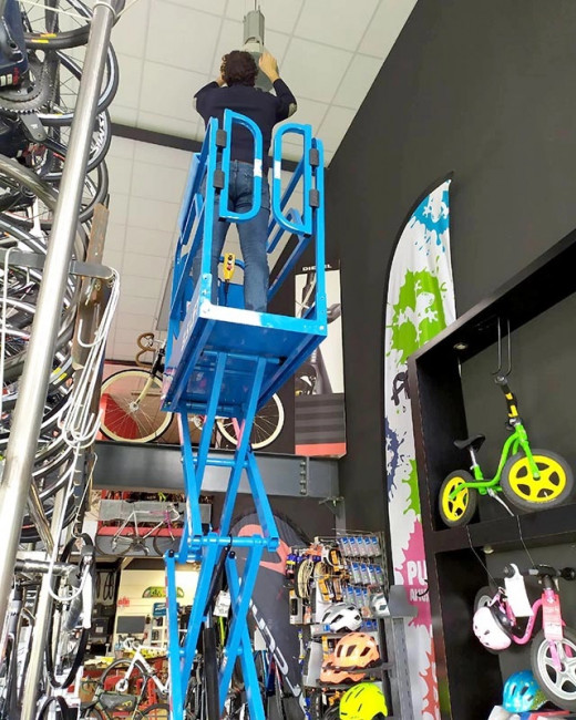 Ces plateformes électriques à déplacement manuel permettent de travailler en hauteur.