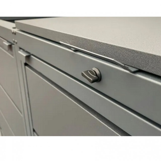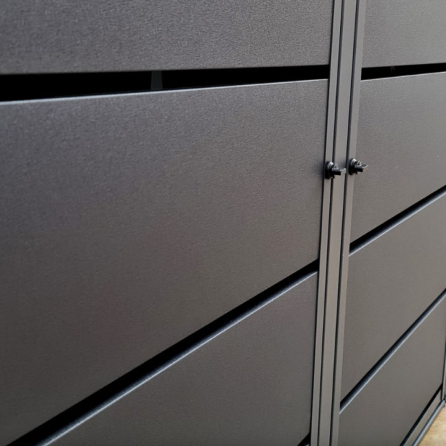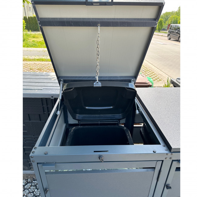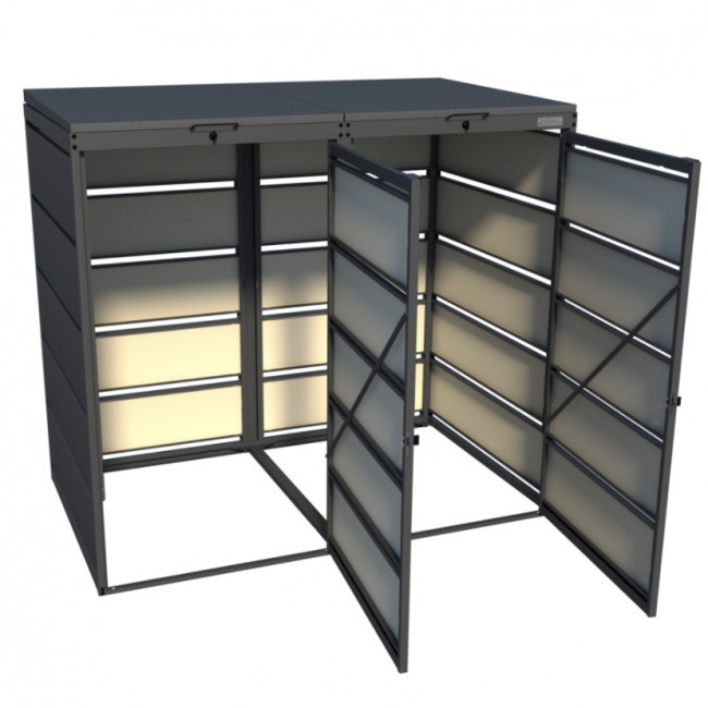 • Chaque module pour poubelle dispose d'une porte frontale pour pouvoir rentrer votre poubelle et d'un capot pour pouvoir jeter vos ordures sans sortir la poubelle du cache.