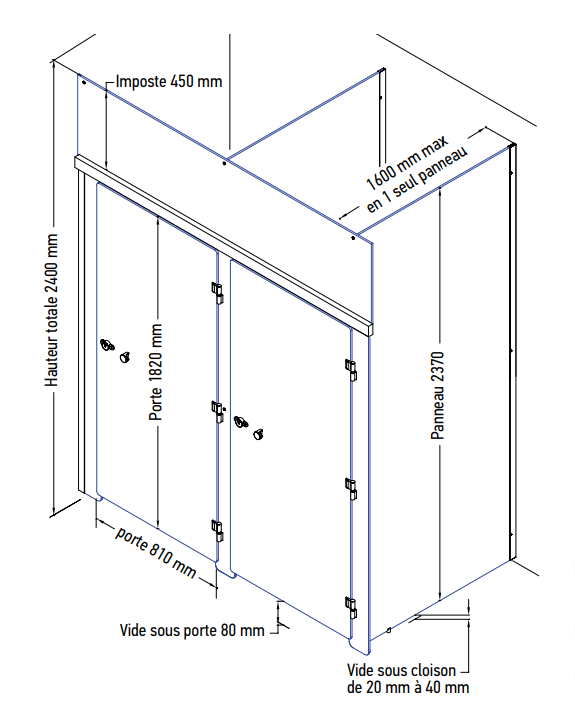 cabine sanitaire cloisodouche est conçue avec un imposte de manière à préserver complètement l'intimité de l'utilisateur.