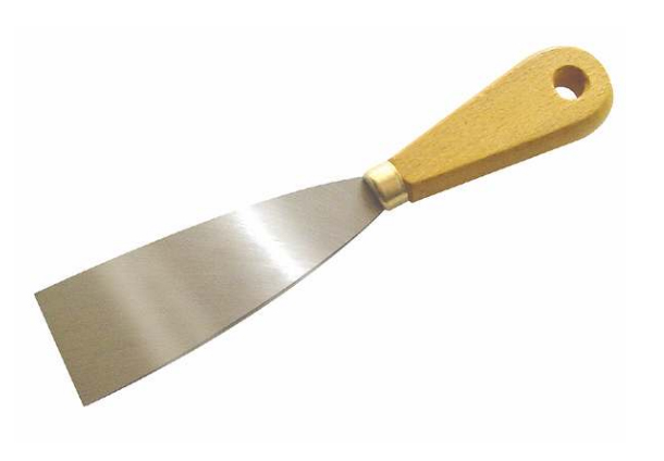 Couteau de peintre standard avec une lame en acier trempé protégé par un vernis incolore. Dispose d'une virole laitonnée et une manche hêtre teinté marron satiné.