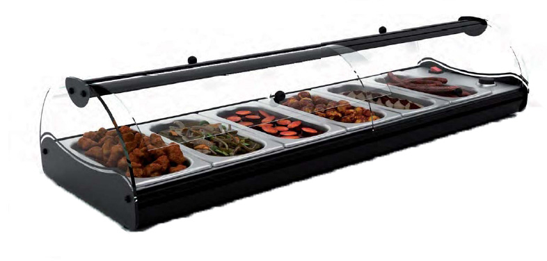Réf. TC : 720340635Vitrine chauffante au bain marie 6 GN 1/3 x 40 mm 1000 1190 x 395 x 245 80°C