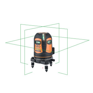 Il projette 4 lignes verticales à angle droit, une ligne horizontale à 360°, une croix laser au plafond, ainsi qu’un point d’aplomb au sol.