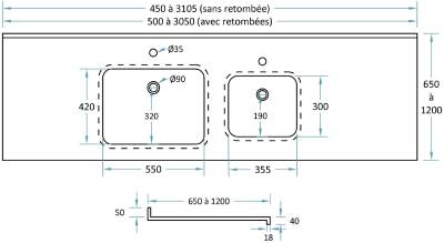 Paillasse sèche humide sur mesure - En solide Surface - Ep. 18 mm