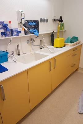 Cuve(s) intégrée(s) pour paillasse humide, joues latérales, angles à pan coupé