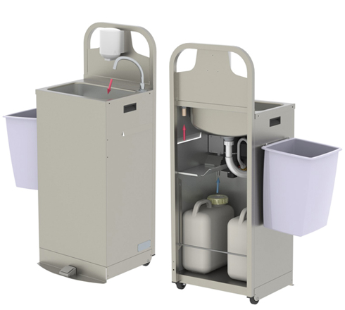 - Equipé également d’un distributeur de savon pour le nettoyage, d’un emplacement pour rouleau d’essuie mains pour le séchage hygiénique des mains et d’une poubelle amovible