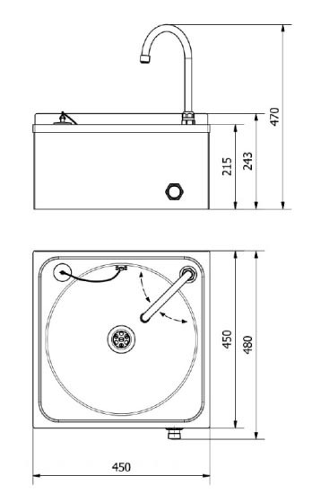 Ce lave-mains à commande au genou en inox est adapté pour une utilisation sans contact pour une hygiène optimale.