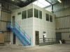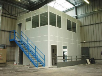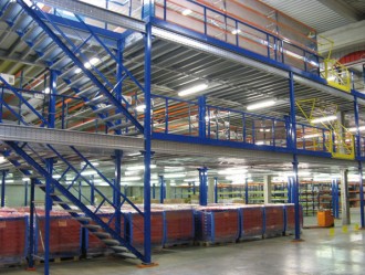 une plate-forme de stockage (mezzanine) de 12 à 14 m de long sur 10 à 11 m de large et entre 2,80/3 m de haut .Charge environ 200Kg/m²