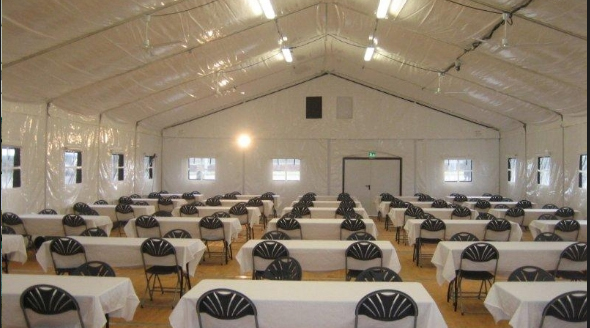TENTE étanche modulable en 4 zones à déploiement rapide avec chauffage et prise électriques dans chaque zone DIMENSIONS 8M X 4M environ.