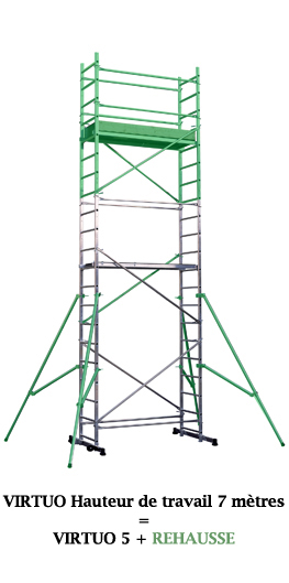 Pour atteindre une hauteur de travail jusqu'à 7mètres, vous devez vous fournir 2 colis : le Virtuo et la rehausse