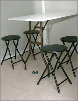 - Si possible; Table avec chaise, extincteur, four micro-onde et mini frigo.