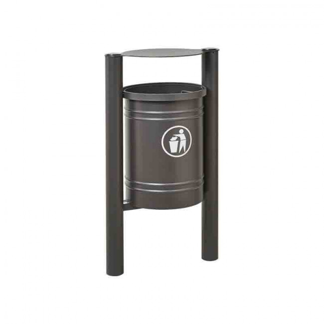 Le corps est en tôle d'acier, épaisseur 1,5 mm, maintenu en partie supérieure par 2 demi arceaux horizontaux en acier plat dont l’un se lève pour permettre le basculement du corps de la poubelle à 45°