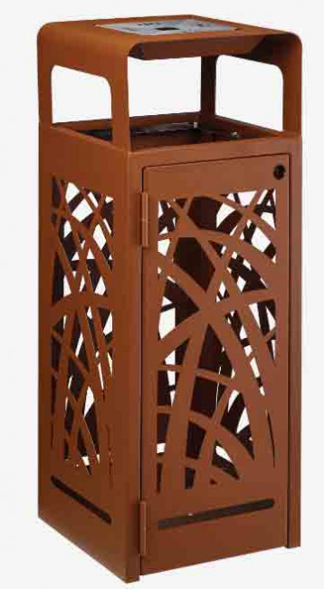 Corbeille à poser ou à fixer 110L avec cendrier Effet Corten |