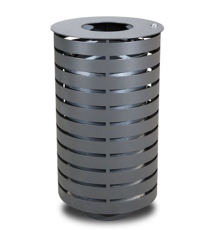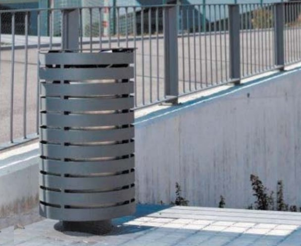 Cette corbeille en acier galvanisé est conçue pour stocker les déchets et préserver l'environnement de la ville.