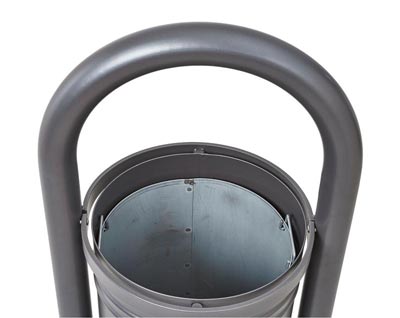 Le seau intérieur, en tôle électrozinguée 8/10e avec anses latérales. Il est basculant, afin de vider la corbeille plus facilement.
