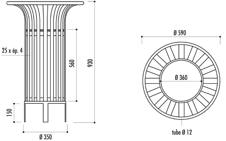 Elle est composée d'une structure en fer plat 25 x 4 et d'une peinture de finition peinture au four coloris (selon modèle).