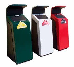 Résistante aux intempéries, cette poubelle extérieure s'intègre aisément à tout environnement public : jardin, aire de jeux, gare.