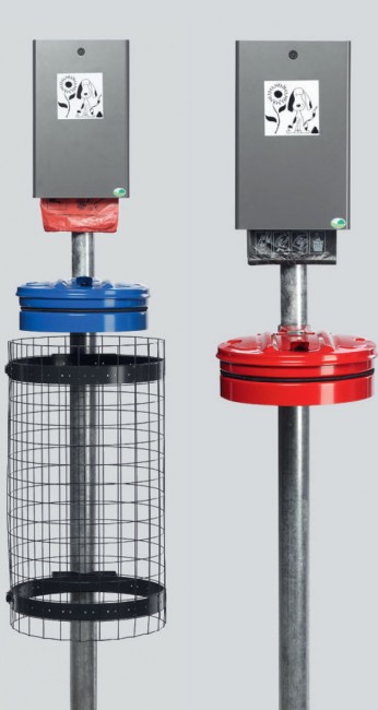 Cette poubelle de ville est disponible avec ou sans entourage grillagé.