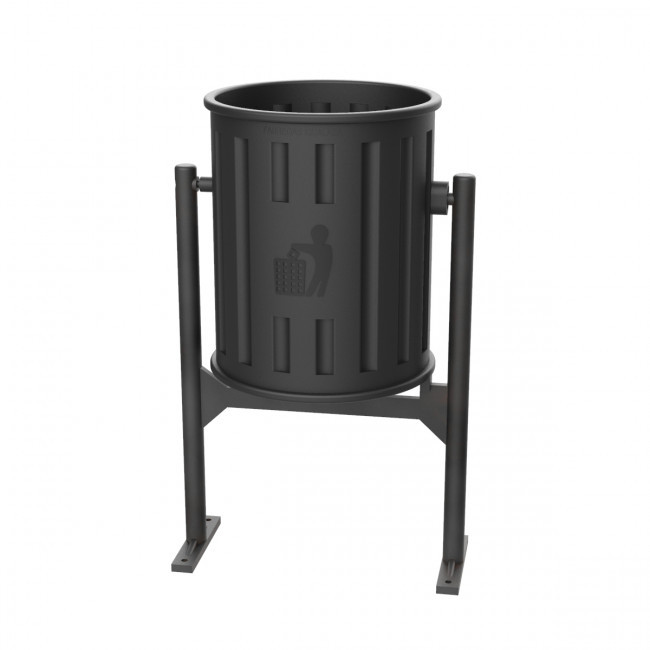 - Fixation au sol par chevillage (non fourni) des 2 platines soudées au piètement de la corbeille