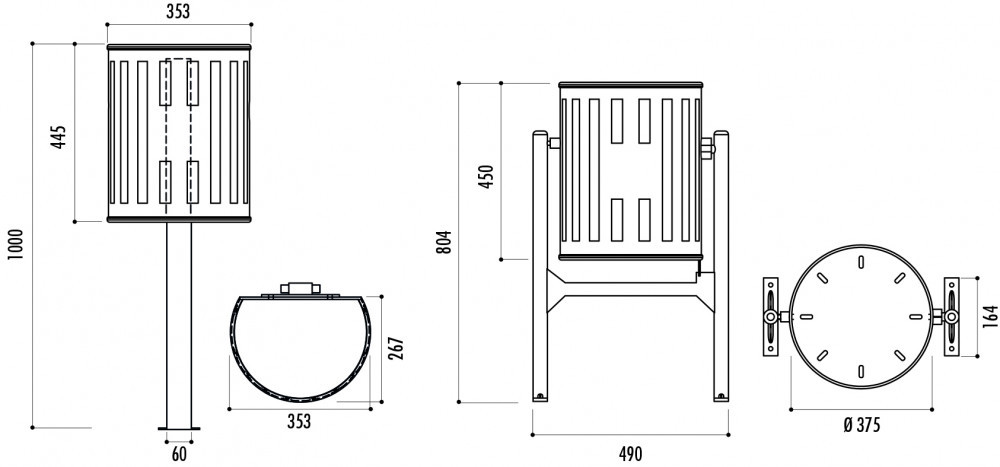 - Équipée d’un seau basculant pour faciliter le vidage de la corbeille pour le modèle rond, pivotant pour le modèle demi-rond