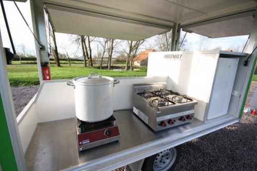 Bonjour , remorque de ce genre , pour 2 planchas gaz et 2 friteuses gaz , avec frigo .