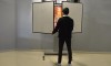 Ce système numérique modulaire associe un écran de 65 ou 75 pouces entre deux tableaux blancs pivotants 4 faces d'écriture pour un meuble mobile (ou fixe) réglable en hauteur.