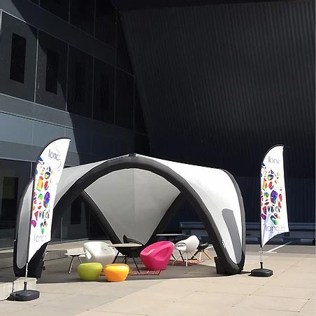 Nous vous proposons une large gamme de tentes gonflable, structure et beachflags.