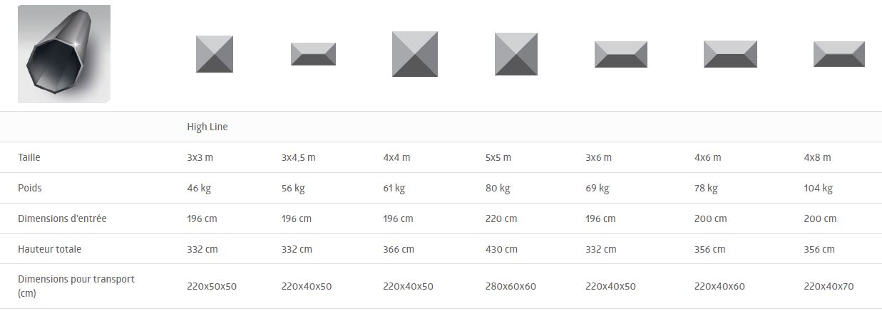 La structure de la tente se décline en deux versions pour répondre à vos besoins spécifiques : la progressive line, qui offre une solution économique, et la high line, conçue pour une utilisation intensive avec une résistance accrue.